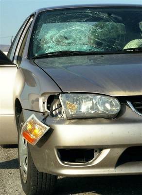 and headlight, and put a noticeable ding in the windshield; in itself, this would be an annoyance,
