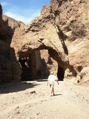 but had a crumbling, bridge-like rock formation overhead. At this point we were about a mile's drive from the lowest