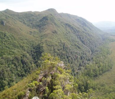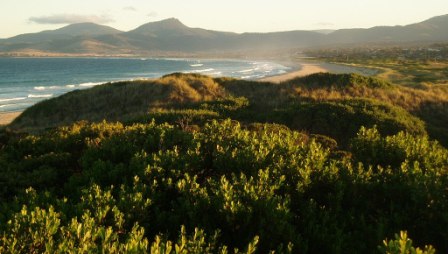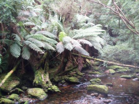 We were up and moving before 7 the next morning (since reception may have taken issue with our use of their lot) and were soon having breakfast on the beach. Leaving the coast, we passed into the Franklin River National Park; we made a bushwalk to a lush waterfall and another to the top of a hill where we could view all of the surrounding peaks; on our final walk of the day, we ventured into platypus territory, scanning the lake waters and poking sticks into burrows, but sadly, we never managed to turn up one of the little egg-laying freaks. From the final park, we drove into the night, moving through a string of villages that rarely had more than a few houses and a single pub. Arriving in Hobart around 9, we checked into the pub/hotel where I had stayed on my first “night"; a band was playing til past midnight, but I was sufficiently exhausted to pass out despite the shaking floor and deafening tones as they banged out “Like a Rolling Stone" directly below. My driver seemed reluctant to get up at 5 in the morning, so I took the AirBus and by 7 was soaring back to Sydney.