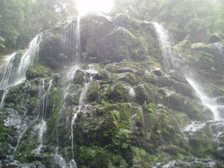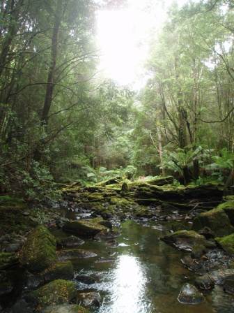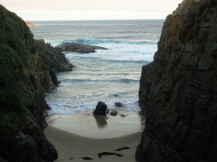 We were directed to a “Honeycomb Cave;" there were no signs (other than the standard “Warning: caves will kill you") to indicate where it was or how to go about exploring it, but just when we were preparing to leave after 20 minutes of searching one big boring room, I discovered a dark channel in one of the walls. Equipped with a flashlight, glow stick, and six backlit LCD screens, we travelled back into the deep, dark recesses, passed by glittering walls and negotiated low-hanging stalactites; when we turned off the flashlight, we could look up into a star-studded sky of glow worms. Our descent halted when it appeared that subsequent passageways were under water; we left the cave and the town of Mole Creek with no time to enjoy other attractions such as a honey farm offering 50 flavours.