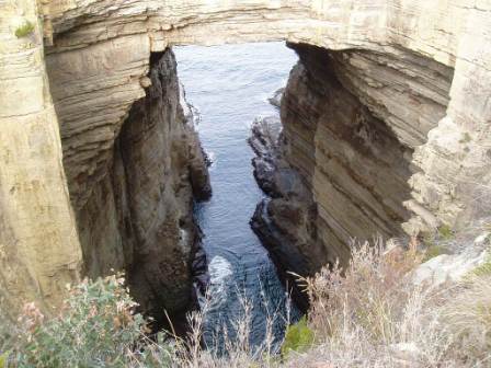 My housemate (a German guy named Jann) arrived from Sydney around noon and we soon set out for the Tasman Peninsula. Our first stop was the Tessellated Pavement where some geographic phenomenon had caused the rocks to resemble grooved blacktop; next it was on to the Blowhole (which wasn't really blowing at the time), Devil's Kitchen, Tasman Arch, Remarkable Caves, and other cleverly named assortments of rocks. We passed through Dootown where in lieu of numbered addresses, the residents had named their houses with some doo-inclusive term such as “doodle-doo," “much-a-doo," or the highly sought after “doo-doo." I attempted to buy a “Couta" (apparently a Barracouda) off a local sandwich van, but when he explained that it was only the raw, uncleaned fish, I thought better of it (still haven't figured out the tin foil on the engine trick) so it would be baked beans for dinner once again. We went to Port Arthur and discovered there was nothing there but a historic site charging $20 admission with more parking spaces than there were residents in the town.
