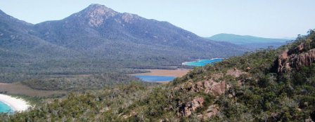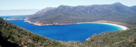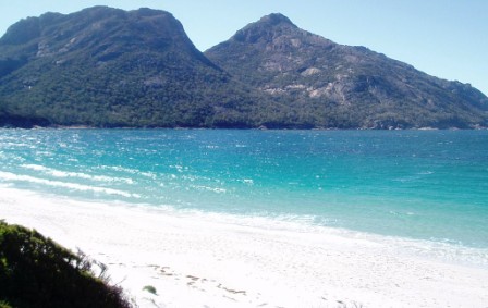 It was a bit hard to get across to my roommate that we should take advantage of the early morning daylight hours (it gets light here at 5:30) and we didn't get moving til after 10. We went north to Coles Bay and the Freycinet Peninsula; here we paid the exorbitant $20 national park fee (so as to avoid a possible $25 fine) and hiked to Wineglass Bay – here a pristine beach awaited us among the mountains.