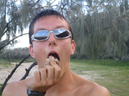 Another semi-bearable night passed and in the morning we headed south to a rainforest-walk. There was some dissension in the ranks on the issue of walking anywhere, but we tricked them into going down a 4km path; we were forced to turn around when I made the mistake of mentioning a garden snake I had spotted – fortunately, I got out of having to carry anyone. We then went to a picnic area and made lunch from whatever happened to be left over – this resulted in the delicious concoction of tomato, cheese, spaghetti, and peanut butter sandwiches, and afterwards passed out on the beach of the picturesque though heavily overcrowded Machpherson Lake.