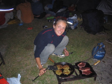 Our food ration had been accompanied by detailed instructions on how to divide and prepare it, and at lunch we had meticulously counted the cheese, bread and cookies and allotted each his/her fair share. On the menu for that night was steak and potato salad – fortunately there were members of the group that had some notion of how to cook, and I could stick to my area of expertise – the eating. There was a total fire ban so we all huddled around the glowing ember of the mosquito coil and conversed in half a dozen languages. The night passed smoothly with no dingo attacks on our food or those going to the toilet.