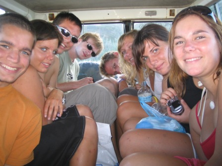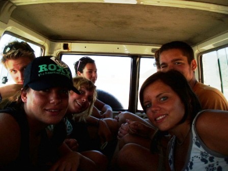 In the morning we grabbed a few more pancakes, assembled our gear, got our food ration, and packed everything on top of our 4WD. After an hour of preparation, we all piled into the truck and triumphantly turned the key; the ignition made just a clicking sound and so we watched forlornly as the five other groups drove off to the island without us. We waited another two hours while a mechanic threw in a new starter motor, then we were off (though the speedometer was broken and one of the doors didn't open). We had been given bad directions and got a bit lost on the way to the barge, but we put our heads together and managed to get to the launch 20 seconds before the last boat of the day departed.