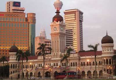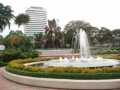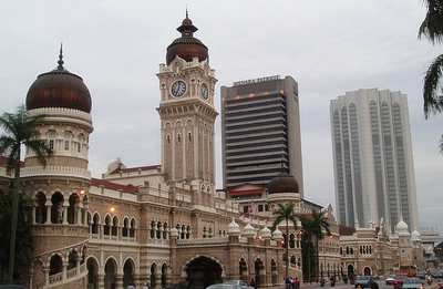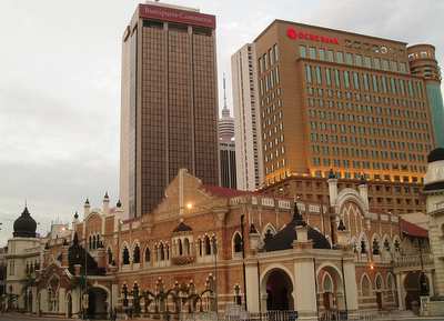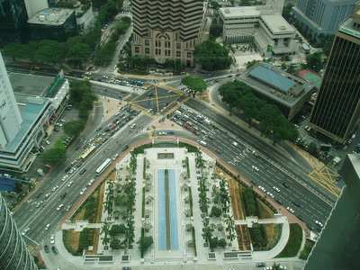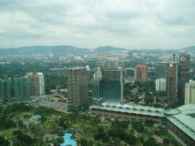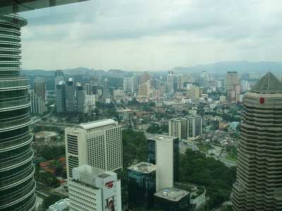 I arrived in KL at 9:20, and having lost so much time, I immediately set about getting hopelessly lost. I did manage to find a South Indian restaurant where I got pancakes and dahl on a banana leaf for a quarter. Next I took the city's monorail up to the famous Petronas towers (higher than the Sears Tower by 10 meters) and got a ticket to go to the bridge look-out 3 hours later (they only release 1500 tickets a day).
