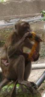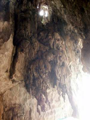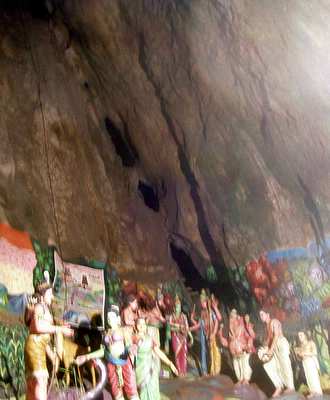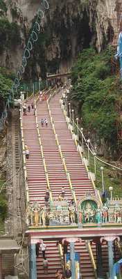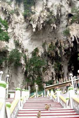 I took a bus out of town to the Batu Caves; these were a series of impressive hollows in a giant mound of rock that jutted out of the flatlands. The first cave was filled with amazingly colorful Hindu artwork and the second had scriptures from the Bhagavad Vita which would have been much more insightful had I been able to read sanscript. The largest cave began with a 270-step staircase. Signs everywhere said "Beware Monkeys," but I didn't take this seriously until I noticed that there in fact several dozen monkeys running down the banisters and the surrounding rock. I wasn't clear on what I needed to be wary of until one of the monkeys leaped onto a man's chest, screeched in his face, and stole the bag of food he was munching from - he gave up far too easily and didn't give me time for my camera to boot up.