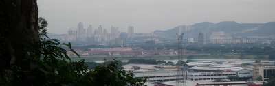 I made it to the Malaysian border just in time for rush hour - thousands of cars and pedestrians queued up to pass through customs and cross the causeway. Our bus kicked us off so we could run through customs and hop on another bus on the other side. Unfortunately, there were seeral hundred people waiting on the same ride, so I opted to walk the rest of the way to the bordertown of Johor Bahru. On the other side of the bridge, there was another customs checkpoint where booths electronically checked your transport - I couldn't figure these out, but I figured I had already gone through one check, so I just hopped the turntables, waved to the armed guards and walked on into the city (I was very tired - my brain wasn't really working).