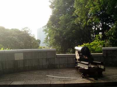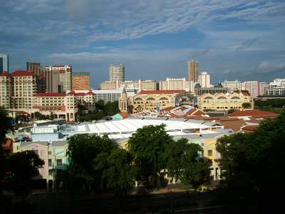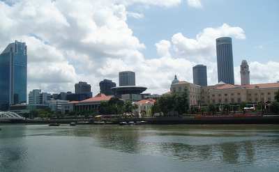 I began exploring; Fort Canning was a big expanse of greenery with cannons strategically positioned to take out the city's key buildings if the citizens ever got out of line. The riverbank was lined with upscale tourist restaurants and shops (like Hooters). Chinatown had plenty of narrow alleyways where you could buy weird medicinal roots and treasure-summoning cats. A huge market showcased loads of strange fruits and seafood - one guy had a case full of turtles and another with bullfrogs. In one corner, a house cat was sitting among the wares; I can only hope he was a pet and not someone's Sunday roast. A massive food court held stalls hawking every conceivable type of food - rigorous health restrictions ensured that the ramshackle huts served up safe, clean dishes. Singaporeans love their food but it seems they lack any actual distinct national cuisine; instead, they serve a mish-mash of Malay, Chinese and Indian dishes that range from chi crab to fish-head curry - my suspicion is that no locals actually eat the latter; the typical asking price is several times that of any other food, and its ingredients (curry, fish head) don't seem particularly valuable; I think it's just a scheme to trade tourist dollars for worthless leftover fish parts. I went in one restaurant and was shown a menu - I selected a dish for 75 cents, but then the owner discovered that she had accidentally given me the Singaporean menu, and traded me for one where all the prices were twice as high, so I had a big helping of cuttlefish porridge for a buck fifty.