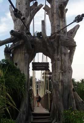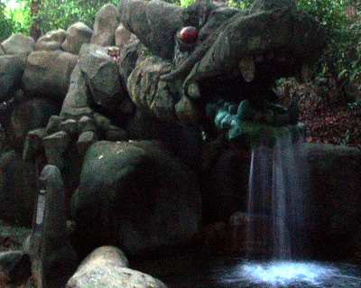 I had a few more hours of daylight to kill so I took the train to the resort isle of Sentosa. Here I ventured out to the "southernmost point in continental Asia", which seemed like a dubious claim as this point is on an islet joined by bridge to another island, connected by causeway to Singapore (which is in fact an island), and the industrial island of Jurong is clearly further to the south. I hiked up a dragon trail where various forms of dragons had been deposited for no apparent reason. It was getting dark so I made for the musical fountain; this was your typical "shoot jets of water 100m into the air to music" but with the twist of trippy, laser-projected images of dancing monkeys and fish.
