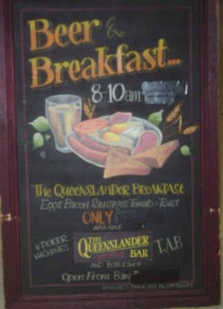 The weekend before classes started, my school prepared a high-priced trip to nearby North Stradbroke Island. Around 120 international types (60% American, 35% German, handful of Scandinavians and others) were put up in a hotel right off of a long sandy beach. We spent three days surfing, partying, hiking, partying, and chasing down kayaks in a pitiful attempt at 2-person surf kayaking. The trip was led by a guy named Merlin who was apparently a major celebrity from Australia's "Big Brother" reality show and our tour was frequently mobbed by local middle school girls wanting pictures and autographs. Our meals were held at what appeared to be the only dining establishment on the island - the local Bowling Club (bocci ball, petanque, lawn bowling - that game that all the old people play back home) which offered live music by an aging band that played entirely American songs and donned fake dreadlocks at one point in the act to do their rendition of some of our reggae hits; next door was the "Local Bar" where all sorts of interesting characters spent their nights - the women in our group were strongly advised not to fraternize with any of the locals as they were all huge losers.