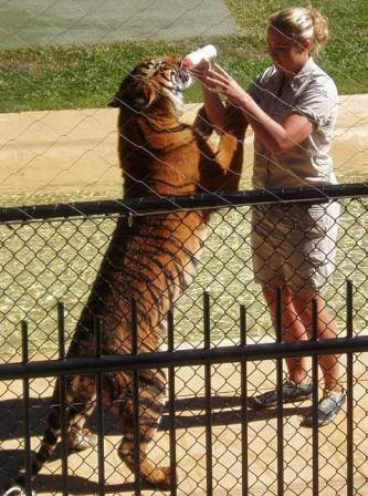 The ferocity of any animal can take a major hit when you see it drink from a baby bottle