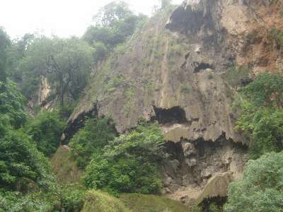I reached Sai Yok Yai National Park about 30 minutes before dark; I had been told that the ticket I had purchased earlier would be good here, but I didn't want to waste precious daylight trying to explain this in Thai, so I went with the old-fashioned approach of driving past the booth at 50km/hr. I don't know if I actually found the waterfall or not; following signs for various lookouts, I ended up in backyards where I was chased by vicious attack dogs. It was too late to visit the “Bat Cave", which is unfortunate since Batman has always struck me as a swell guy and would no doubt put me up for the night.