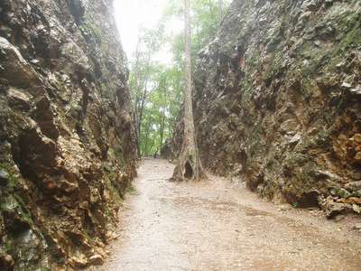 Returning down the slippery slope from the top tier to the parking lot, I set off back down the road to Sai Yok Noi Waterfall; Lawa Cave was apparently nearby but I never managed to find it – Thais have this interesting habit of providing excellent signage until you actually need it – for 50km I saw signs pointing straight-ahead for Lawa Cave, but when the road ended in a T, there was no indication of any kind as to which way to turn. A little further down the road I did manage to find Hellfire Pass where in a bizarre twist, they'd actually commissioned a native English speaker to write intelligible signs explaining the history of the death railway.