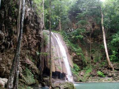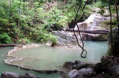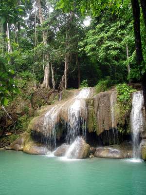 The first of many tiers of the Erawan waterfall