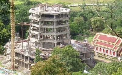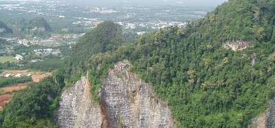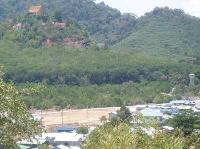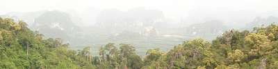 In the morning, I took a nearly empty, constantly twisting road through the mountains back in the direction of Krabi. On the way into town I visited the Tiger Cave Temple that sat several thousand feet above the surrounding landscape on an abrupt chunk of rock. Unlike in Kanchanaburi, they didn't have live tigers for guests to play with (it would've probably been quite a trick to get them up the 900-step staircase), but there were plenty of belligerent monkeys that would sit in the dead center of a step and force me to swing up the banisters to the upper levels. As could be expected, the views from the top were pretty incredible, and after I had regained consciousness following the ascent, I was inclined to stare out over the surrounding landscape and hold off on the return trip as long as possible.