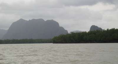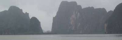 The next stop was Ao Nang Beach that served as the main faraang district of the area with plentiful tour shops and overpriced western food. With an hour of daylight left, I headed north towards Pha-Nga. The scenery on the way up was fairly incredible with dramatic limestone cliffs randomly popping out of the level earth in all directions; unfortunately, the high winds were nearly toppling me at every corner, so I was slowed to a crawl and lost the latter half of the landscape to darkness.