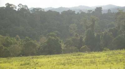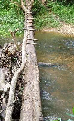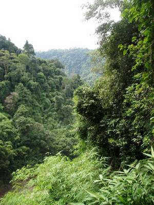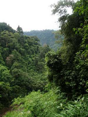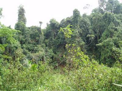 Venturing through the jungle, I heard the screams of a few dozen gibbons, as well as the sounds of hornbills and various other birds, and the occasional gurgling of some large carnivore's digestive tract. I never actually saw much of anything besides a small green snake and something resembling a bush baby; a few hundred spiders crawled across my head at one time or another, and plenty of malarial mosquitoes made their presence known.