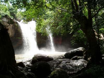 Around 10km later, I arrived at the park's most famous waterfall, Haew Suwat. Next door to that was one of the state-run restaurants; Khao Yai may be the one place in the entire country where commercial development is expressly forbidden (I'm fairly certain there are street vendors who set up shop in the middle of the prime minister's office) and the only food to be found is at a collection of five strategically-placed cafes with identical menus. After lunch, it was another 15km hike to the wildlife-watching tower; it seemed none of the park's man-eating tigers were lurking in the shoulder-high grass when I arrived.