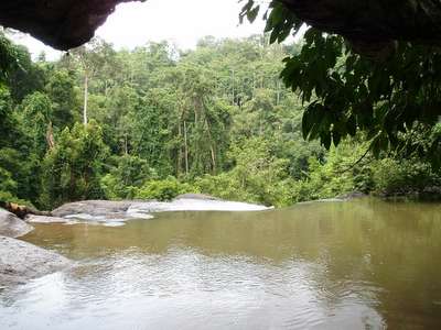 Apparently, half the trails were closed for the rainy season, but I was given a map that marked out 25km of jungle walks and gave lengthy instructions in Thai on how to tackle them. Despite all the materials I'd read about needing a guide to go anywhere, the person at the desk seemed perfectly willing to send me off into the wilds by myself, so I started out easy with the paved nature walk. Somehow (I guess I glanced up from my feet a few seconds too long) I managed to get hopelessly lost in the woods surrounding the 1km circular trail; I never saw the pavement again, but eventually found a marker for a different trail and set off on it.