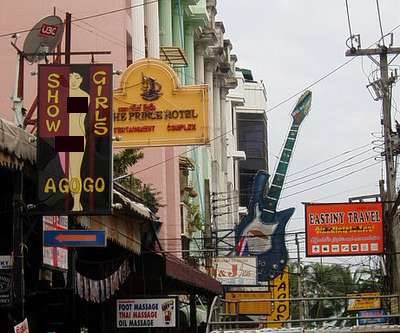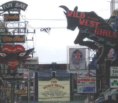 At night, I can only imagine that walking these streets would be a truly terrifying experience, but as I arrived in the early morning, it was only moderately disturbing. Go-go clubs lined every street and half-dazed bar girls shouted out offers from every patio. Further to the south, the countless adverts for loose women were replaced by an equal number of signs along the lines of “Boys Live Nightly" and “Massage by a Man"; tall, burly prostitutes chased me down the street calling to me in voices far deeper than my own.