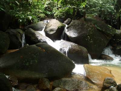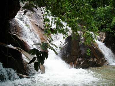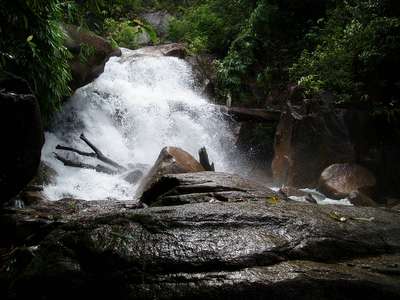 Once I got off the main highway, it was a pleasant enough ride, but it was marred by the fact that I had no clue where I was going. I saw a sign for a place called “Khao Mai Kiao" which translates to “Mountain Not Green"; I was, quite frankly, fed up with all the green mountains around this place, so the non-greeness of this one was sufficient reason in itself for me to steer towards it. Much to my dismay, I found only a small town with no grey, black or teal mountain in sight. I stormed into a 7/11 and demanded that the attendant give me directions to a mountain nearby, and she pointed me towards the east. So I headed down one country road after another over the next couple hours; as the sun set, I considered figuring out where I was and deciding where I was going to sleep. The locals were able to eventually convey to me that there was a national park nearby which had lodging.