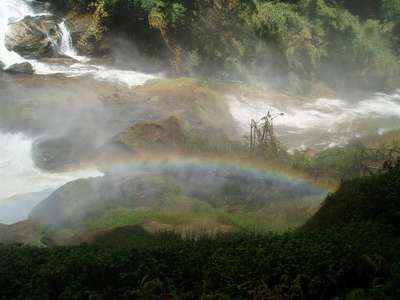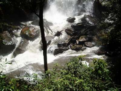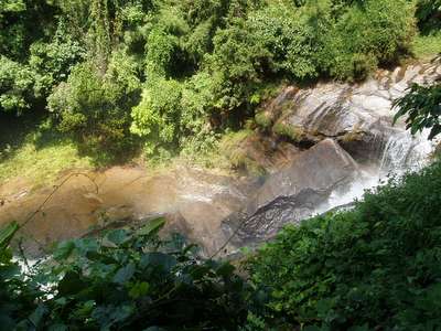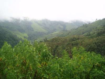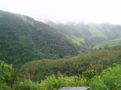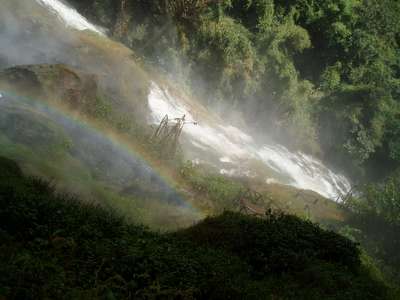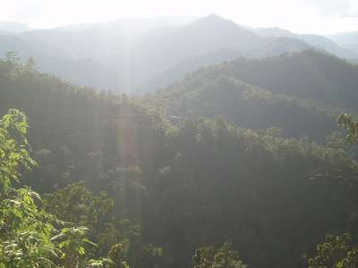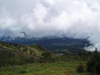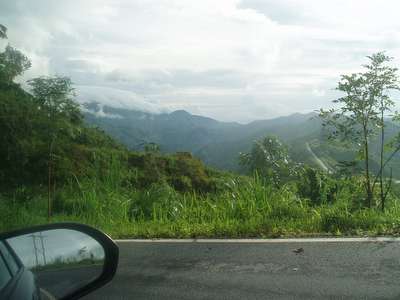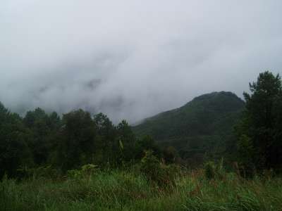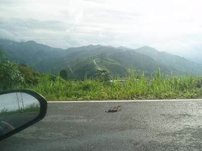 The quality of the road on the next leg of the trip deteriorated rapidly. There were frequent mudslides, downed bridges, wandering cattle, undermined sections of road along the cliff, and a myriad of other hazards. In one spot where we had to edge over high dirt amounds and around a few dump trucks, we failed to notice a sign indicating a turn to our destination and moved on to a road with an even lower level of maintenance. In one spot, patches of payment were interspersed with deep dirt holes along a stretch of road that was frighteningly close to vertical and we just barely escaped with our "city-driving" economy car.