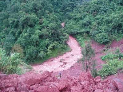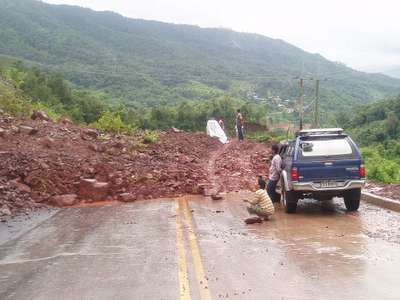 As darkness fell we discovered that we had passed the last guesthouse for a few hundred kilometers an hour before; with no desire to backtrack, we moved forward through the driving rain on a mountain road designated in our atlas with the words "other road." After about 5km we came to a landslide that was still in the process of sliding and started to rethink the whole drive-through-the-night plan.
