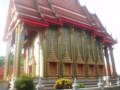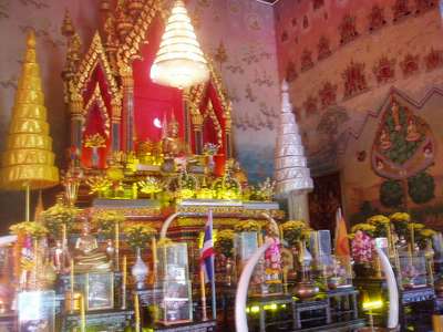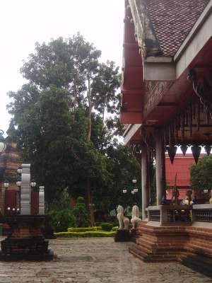 We trekked across town to a few of the more impressive wats. We eventually reached a forest wat that supposedly had caves and tunnels. We only found an open zoo which was so open that all the animals had been allowed to escape and all that remained were a few stray cats and chickens. Next door was a wildlife reserve featuring the nature trail of death; it advertised deer and other woodland creatures, but all we managed to find was an intense hike straight up a mountain.
