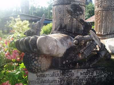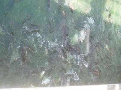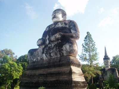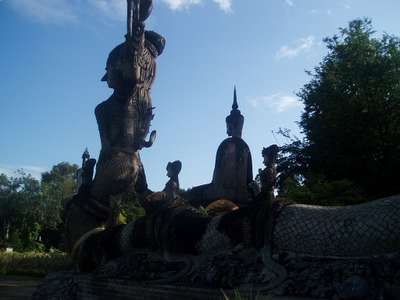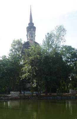 Afterwards we moved onto Roi Et. Here we ate at a Thai/Korean Restaurant which featured such delectable options as "Jellyfish Stew" but my dad had abruptly assumed a quasi-vegetarian stance that prohibited him from the more original menu items. In the morning we climbed up a 63m Buddha in an attempt to see a view of the town and then proceeded to the lake where giant catfish nearly stood upright at the edge of the water with mouths open just waiting for a hapless toddler to teeter into their waiting maws.