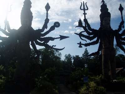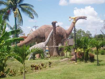 We had no agenda whatsover for the final leg of the trip, so when we saw the first signs for "Jurassic Park," we set a course for the mysterious attraction that had alluded our maps and guidebooks. As the kilometers counted down, we began to see pods of giant concrete dinosaurs popping up in random spots along the road. Nearing one forest wat, we ran through rows of gift shops selling inflatables and pre-assembled bone kits to reach the museum which was apparently at the heart of all the propaganda. Unlike its cinematic namesake, the "Jurassic Park" museum was lacking in the area of living, breathing dinosaurs, but did have a few interesting bones.