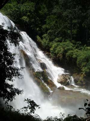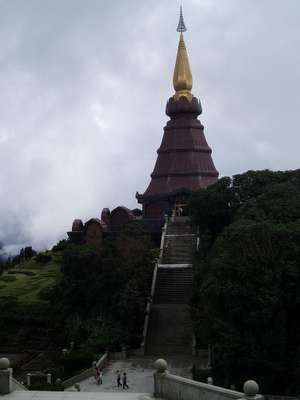 We made our way southwest to Doi Inthanon national park. There were plenty of massive waterfalls along the way and a pair of huge purple wats; the summit itself wasn't all that impressive as there was thick cloud cover and the view was nonexistent. On several occasions, I considered picking up a random Thai guy and asking him to navigate, as my dad could neither read the Thai words or relate what I said to the romanized landmark names on the map - this is not entirely his fault as the transcriptions for Thai are very bad and everyone who reads this without a working knowledge of the language will probably similarly butcher the words; it is extremely painful for me to hear the wrong pronunciations of Thai sites, so if on some future occasion, you happen to ask me about my travels, please follow these simple rules: all Os and Us are long, As are pronounced "ah", AE is a short A, Is are "ee" and all Phs and Ths are Ps and Ts respectively - this means that "Phuket" is not profane but "Phi Phi" is - if you ever happen to pronounce the word "Thai" like it's spelled, I promise I will become violent.