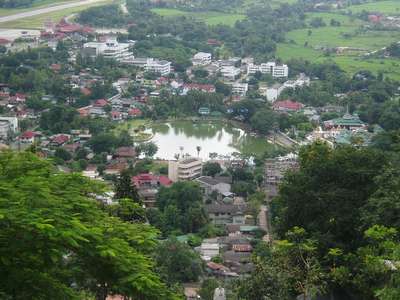 When we finally reached the main road, the road quality improved but the terrain did not. Along the way, we came across a public bus that had crashed into the side of the mountain sometime earlier that day and was still stuck there, blocking 1.5 lanes of traffic. At another point, a cobra, several meters long, stood up and menacingly glared into our headlights - right before it delivered to our front-left tire venom enough to kill seven men but not quite enough to stop a Honda City. We escaped a close call with motion sickness and arrived in the touristy town of Mae Hong Son around 8 at night.