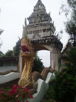 In the morning we set out to drop our car off at the rental place. Unlike every other airport in the world, Udon Thani hasn't bothered to post any kind of sign or make any allowance to give tourists a chance of finding the airport. Relying solely on Thai directions, we steered down a long series of back alleys before arriving at a modern international terminal. The representative drove us back into town to the tourist office where we were informed that there was in fact nothing to do in Udon Thani. So, we went to a few markets, visited some Chinese temples, and walked around a lake before seeking out a bus to Nong Khai.