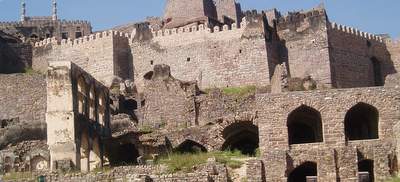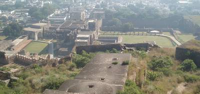 In the morning I spent an hour sorting out the bus situation and eventually found one that went to Golconda Fort. This was a very impressive, ancient structure where you were free to scramble around on the ramparts and gaze over the city from the heights of the central towers. Next, I took another 4 or 5 buses to get over to the fever hospital where I they put a big "Nagative" stamp on my file for Malaria. From there I went to a hilltop temple where they confiscated your camera so you couldn't get any shots of the surrounding city.