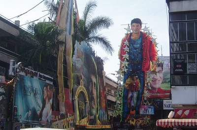 Not only were there no previews at this movie, but the feature started a full 10 minutes before scheduled. The screen and sound were superb and the audience was livelier than anything you'd see back home - they hooted at all the women, cheered for the action scenes, and went freakin' nuts when the two Indian actresses made their brief appearance. An hour through, there was an intermission where helpful slides reminded the audience to always spit into the spitoons provided while watching the film. The instant the credits began to roll, the projector switched off - power is expensive, and no one cares about those anyway.