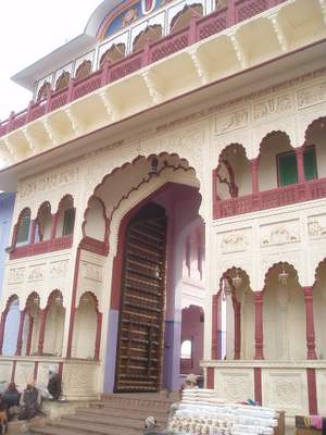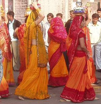 Going through town (large parts of which were entirely blue) I came across a parade; this was led by men on horseback in elaborate costumes who were followed by women with buckets on their heads, who were subsequently followed by a general rabble, one member of which was completely naked. Parades seem quite popular in India as I have come across at least one nearly every day of my stay; I have never been able to pick out the purpose of one, but they're rarely more than one or two floats. I think the way these are generally started is something like this: a group of friends is sitting around with nothing to do; one of them says, "Hey, I know what we could do, we could have a parade!"; so, they all get on the phone, grab a few dozen of their closest friends, throw some feathers on a rickshaw, throw a mix tape in the boombox and hit the streets. I suppose this promotes community involvement and is much more constructive than anything my friends and I ever did in our spare time.