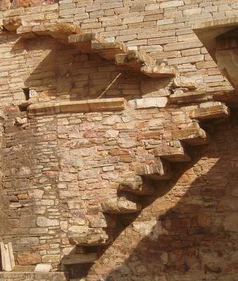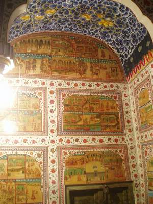 Once in the fort, the circuit started with the ruins of an old palace as well as a well-maintained modern palace that doubled as a museum and public school; the curators of the former obviously didn't believe that my 3 rupee admission charge warranted turning on the lights, so I couldn't really see any of the exhibits, but I think it was the usual array of weapons and decomposing stuffed animals.