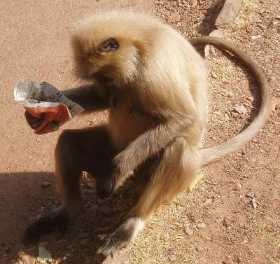 Down the road at the Tower of Victory, I came across the first snack vendor of the day; as I hadn't eaten anything all morning, I grabbed a cone of bhelpuri and went to see the monuments. As I should have expected, the area was full of monkeys, and after only a few mouthfuls of my breakfast, it was stolen by one of the pesky beasts; I remember a time when I looked forward to seeing wild monkeys, but now that I've seen a few thousand of them, the dirty little thieves are really just becoming something of a nuisance. Shortly after this assault, I was attacked by a woman wielding that forehead paint that doesn't wash off for 3 weeks (probably much longer for your average backpacker); she got her thumb about an inch from my skin before I sharply recoiled and darted from the complex.