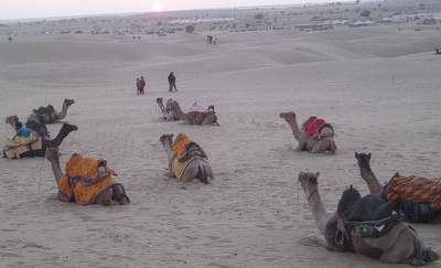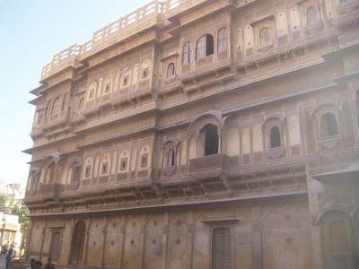 Jaisalmer is nothing short of amazing; it is as if the desert had been molded into a huge, ridiculously intricate sand castle. Every alley is lined with old houses bearing exceptionally detailed designs and a few mansions allow you to walk around inside to see the work up close as well as snap photos of the surrounding city. The central fort houses an expensive museum, which holds little more than a massive stamp collection, as well as several large temples, palaces and other imaginative edifices; it is truly a living museum, as hundreds of people live and work inside and most of the upper tier of hotels and restaurants are located there. Down the hill from the fort is a pleasant lake and a folklore museum which features exhibits on how to ornament your camel and filter opium.