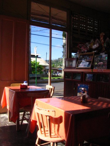 In our explorations of the town, we happened upon the last piece of Americana we would have expected to find in Latin America - a Taco Bell. We resisted the urge to pick up a couple of bean burritos and instead went to a nearby, slightly fly-infested soda (small, informal dining establishment). They spoke even less English than we did Spanish, but pooling together our collective vocabulary, with a fare share of pantomiming, we were able to get across the point that we wanted something to eat. We had an excellent fried fish dish accompanied by the staple of gallo pinto - rice and beans with various spices - all this combined with two bottles of water came to the very reasonable price of 4 bucks.