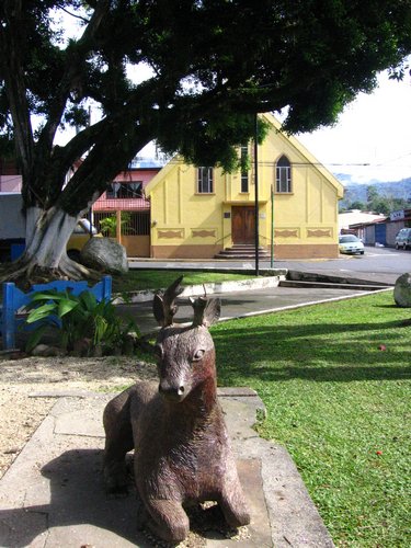 After staring at the guidebooks for some time, I had concluded that there was absolutely nothing to do in this mid-sized suburb of San Jose, so we proceeded to wander aimlessly through the quiet streets. We sought out a bakery where Andie got a cinnamon wheel and I got something that closely resembled a block of lard. As it was a Sunday, hymns could be heard on every block; this, more than any country I've previously encountered, is conspicuously Christian, and Jesus is absolutely everywhere - I believe this point is best evidenced by the following sign I read in a bus - "Don't Smoke, Jesus is Watching You." We chose one of the monolithic Catholic churches - these are typically inordinately huge, whitewashed affairs with nothing resembling decoration. With no AC, all the doors are left open and there are frequent visits by the all matter of flying creatures; bird watching came as a welcome relief during the incomprehensible (a.k.a. Spanish) forty minute homily.