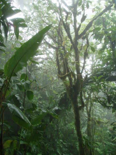 At around 10 minutes to six, I convinced Andie that we had to make the six o'clock bus to the Monteverde Cloud Reserve. The reasons for this were two-fold - one, to see all the critters of the forest before the flocks of tourists scared them off, and two, to prepare ourselves for the only bus to the pacific coast on the following day, which departed at 4:45AM. After a 30-minute bumpy ride in a part-time school bus, we reached the reserve, and realized right away that we had indeed beat the crowds. Unfortunately we had also arrived before any of the park personnel and there was no one to give us breakfast or sell us a ticket for the hikes. After some deliberation, we decided we could simply walk around the bar blocking off the trails - by the time we heard someone raising an objection, we were already a hundred meters up the trail - which is practically out of earshot.