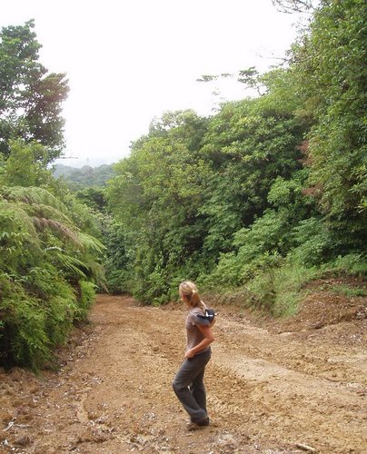 Andie was convinced that, rather than hike the 4km direct path, she wanted to take a taxi back to La Fortuna and on to the national park, effectively circling the volcano. She believed that somehow the driving rain and supposed difficulty of the trail were enough to warrant this bizarre route, but my impeccable logic eventually prevailed, and we were soon trudging up a steep slope towards the summit.