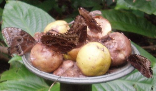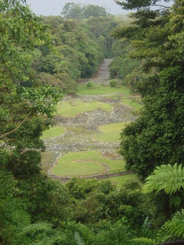 The National Monument consisted of little more than a bunch of organized rocks and a petroglyph or two, but the arriving and departing busses were spaced four hours apart, so we had the full afternoon to wander around the jungle and surrounding town. The guy who sold us our ticket to the site had claimed that the forest was full of jaguars, ocelots, monkeys and sloths - all we saw in two hours of staring at the trees was a couple of mushrooms and one lousy toucan. We walked back towards the city, spying an odd assortment of little tourist restaurants and butterfly gardens along the way. After about 4km, we reached a junction and hopped on a bus back to town.