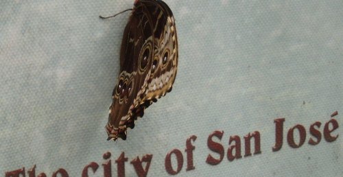 The next day we took an early bus to the capital. My ancient guide book had informed me that there was an excellent crime museum featuring a severed hand among other atrocities, but this had closed down years before. Our next stop was a mattress shop where I thought the Museo Nacional should be - the owner of that shop directed us the actual museum which was housed in a sort of castle that once served as the army headquarters. This place featured plenty of pre-Columbian artifacts as well as an enthralling butterfly garden where Andie spent half an hour trying to capture the giant Morpho in flight.