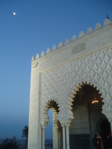 At the edge of the medina, the kasbah's ramparts dropped dramatically into the sea, and couples strolled along the cobblestone street that lined the walls. Back inland, the Hassan Tower and Mausoleum of Mohammed V made impressive spectacles, with the latter being guarded around the clock by eight costumed guards. I exchanged a series of puzzling looks with one of these guards as I tried to silently ascertain if I were allowed to enter the tomb itself, or if he had in fact been posted there to stop me; when I eventually walked past, he did not raise his ornamental elephant gun in protest, so I could only assume I looked sufficiently Muslim or this was one of the few holy sites open to infidels.