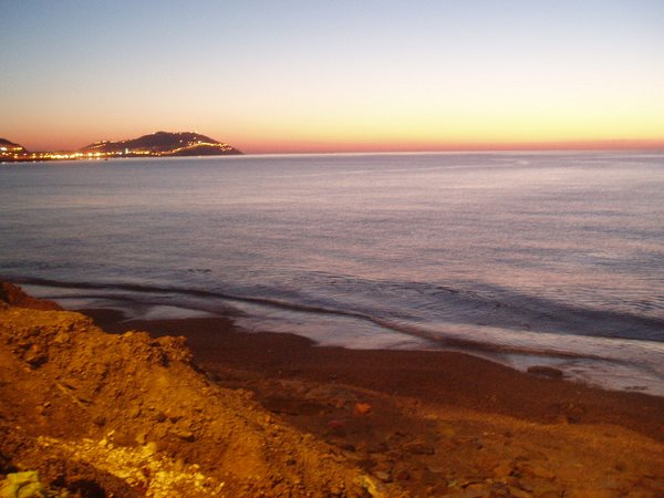 The Tetouan station had no chairs, so the fifty-odd people who were waiting there just slept splayed out on the floor; stray cats leapt from one body to the next, looking for handouts or crumbs. One man was intent on molding a friendship with me, regardless of our linguistic differences, and gave me a pudding cup and showed me how to eat it using only the lid. This was all a bit awkward, so I decided to take the next bus to Fnideq on the border with the Spanish colony of Ceuta. This bus was completely packed, save for one seat in the very back row that the other passengers seemed to be going out of their way to avoid; I would discover why shortly after sitting down, as an unidentifiable liquid gradually soaked through the seat of my only pair of pants.