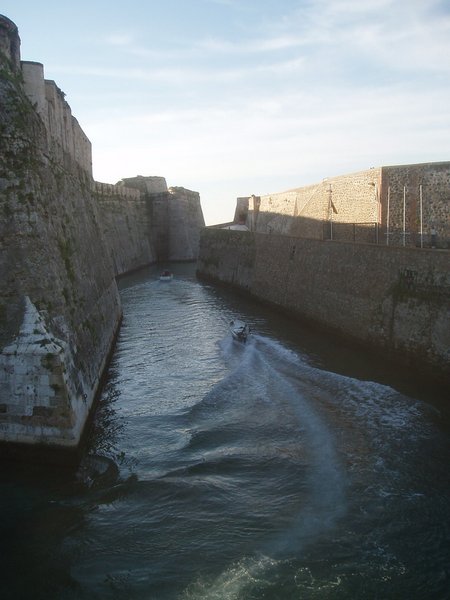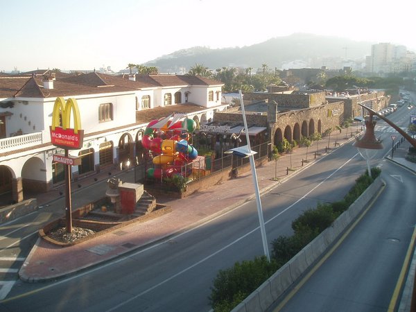 The border was a complicated jumble of incongruous spikes and metal barricades. The Moroccans made me fill out a form and checked my passport multiple times while the Spanish just looked at the American seal on the cover and waved me through without scanning or stamping. Ceuta is a fascinating town with an old fortress, several big churches, and great views of both Morocco and Gibraltar - it's only slightly ruined by Western consumerism. What immediately caught my attention was the preponderance of ads showing women in skimpy underwear, even though most women on the streets never bared so much as an ankle. The Spanish are not known for being early risers, and the town was more or less dead for the hour or so I spent there, so I quickly lost interest and started back toward the border. There was a super convenient bus that ran the 2km stretch to the Spanish side of the fence, but it cost 60 euro-cents, and the driver, reflecting the broader, blindly patriotic attitude of this tiny European outpost, refused to accept dirhams.