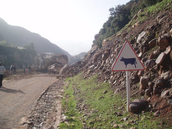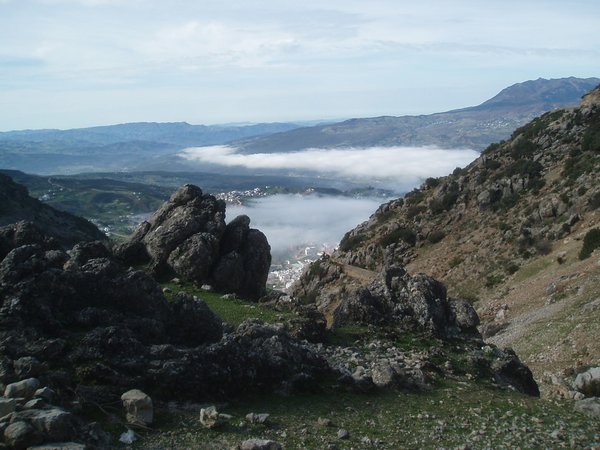 The guidebook had recommended a day hike to a nearby summit and had suggested getting an early start. Since Moroccans by and large don't seem to take to the streets very early, it was a challenge to find someone to let me out of my hotel and subsequently to secure breakfast and a pack lunch, but by 8 I was hiking up a steep trail towards the national park overlooking the town. It was never clear to me whether I took the right trail, as my book had described a pleasant, forested walk with friendly hamlets; the one I did follow rose sharply uphill for several hours without an ounce of shade before it got steeper, and passed a number of gypsy encampments where every resident attempted to sell me weed. From the saddle, the trail to the actual summit was not obvious and seemed to be covered in goats and barking dogs, so I headed down the other side instead and passed along verdant hillsides and quiet villages until the trail dead-ended at the city dump.
